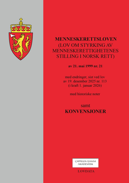 Menneskerettsloven (lov om styrking av menneskerettighetenes stilling i norsk rett) m/konvensjoner - med endringer, sist ved lov av 19. desember 2025 nr. 113 (i kraft 1. januar 2026) Med historiske noter